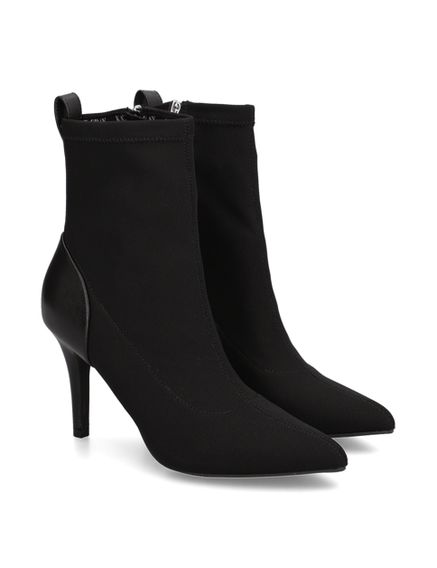 Diese schwarze Textil-Stiefelette von KATE GRAY überzeugt mit puristischer Eleganz und moderner Raffinesse. Das enganliegende Stretch-Material sorgt für eine perfekte Passform und betont die feminine Silhouette, während der spitze Schnitt und der schmale Stiletto-Absatz eine edle Ausstrahlung verleihen. Ein dezenter Lederbesatz an der Ferse setzt stilvolle Akzente und unterstreicht den hochwertigen Look. Ob zum Business-Outfit oder als Highlight zum Abend-Look – diese Stiefelette ist ein Must-have für stilbewusste Trendsetterinnen!