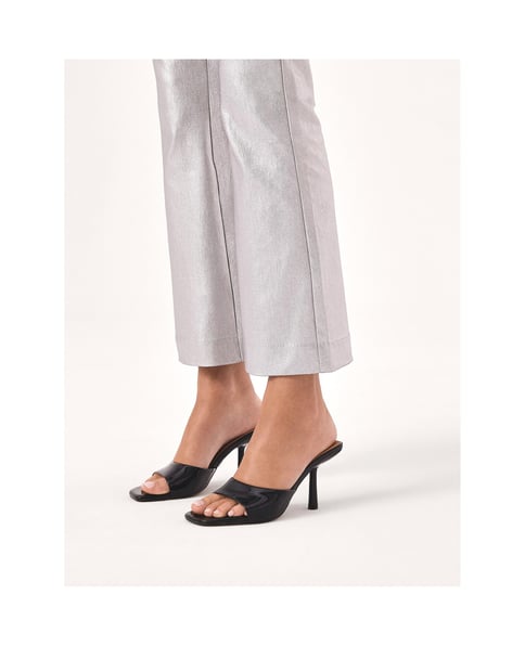 Schwarze Pantoletten aus hochwertigem Lackleder sind ein elegantes, auffälliges Accessoire, das Modernität mit anspruchsvollem Stil verbindet. Die glänzende Oberfläche des Lackleders verleiht den Pantoletten einen luxuriösen Look und unterstreicht ihren eleganten und raffinierten Charakter. Der hohe, schlanke Stiletto-Absatz verleiht den Pantoletten ein schickes und edles Aussehen, streckt die Silhouette und lässt sie leicht wirken. Die quadratische Schuhspitze ist ein modisches Detail, das den modernen Charakter der Pantoletten unterstreicht und einen Hauch von Retro-Eleganz verleiht, der mit dem Gesamtdesign harmoniert. Ein breiter Riemen auf der Vorderseite der Pantoletten stützt den Fuß und sorgt für Komfort und Stabilität bei gleichzeitig minimalistischer Ästhetik. Schwarze hohe Stiletto-Pantoletten sind die perfekte Wahl für Abendausflüge, formelle Veranstaltungen oder elegante Meetings. Durch ihr klassisches und doch modernes Design passen sie sowohl zu Abendkleidern als auch zu