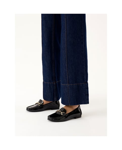 Mokassins aus schwarzem Lackleder für Damen