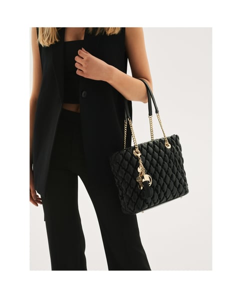 Schwarzer Damen-Topgriff aus hochwertigem , genarbtem Leder, der einen ultra-modischen Look bietet.Die originelle Steppung und die goldenen Details verleihen jedem Style einen Hauch von Glanz.Das Modell ist mit einem goldenen KAZAR-Logo-Anhänger und Lederquasten ausgestattet.Das weiche Leder mit seiner faszinierenden Textur macht diese Tasche äußerst angenehm zu tragen.Diese Handtasche verfügt über:2 große Fächer, geteilt durch ein kleineres Reißverschlussfach.2 offene Außentaschen und 1 Reißverschlusstasche.