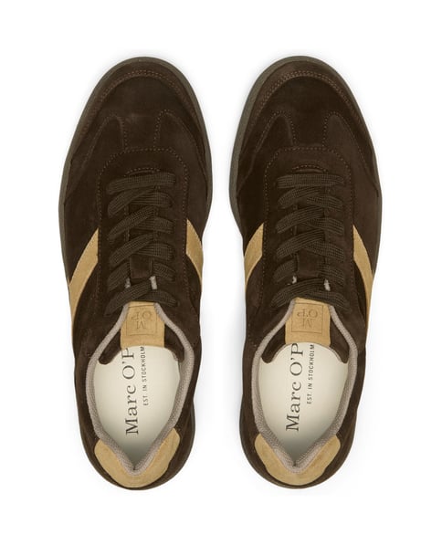 Retro trifft Ready-to-wear: Der Sneaker aus weichem Velours-Rindleder wird in Portugal gefertigt und verbindet lässiges Design mit hohem Komfort. Atmungsaktives Futter aus recyceltem Mesh und eine Mikrofaser-Innensohle mit Memory Foam sorgen für ein angenehmes Tragegefühl. Die unifarbene Basis wird durch markante Farbakzente belebt. Abgerundet wird das Modell durch eine langlebige Gummilaufsohle mit rutschhemmender Krepp-Optik.