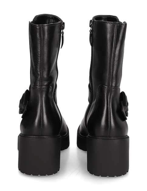 Diese moderne Stiefelette von POÉ setzt auf den aktuellen Chunky-Trend in eleganter Interpretation. Das hochwertige Glattleder in Schwarz überzeugt durch seine geschmeidige Qualität, während die markante Plateausohle dem klassischen Design eine zeitgemäße Note verleiht. Der elastische Einsatz am Schaft und der seitliche Reißverschluss garantieren mühelosen Einstieg und perfekten Sitz. Die dekorative Schnalle setzt einen raffinierten Akzent – ideal für die anspruchsvolle Kundin, die sportive Elemente mit Eleganz verbindet. Zeitgemäßer Style für elegante Casual-Looks.
