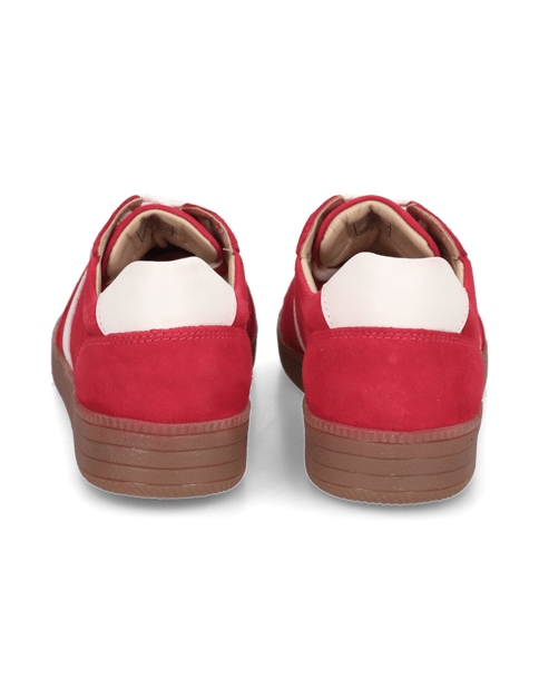 Dieser zeitlose Pat Calvin Sneaker in leuchtendem Rot kombiniert sportiven Charme mit hochwertigem Veloursleder. Die klassische Schnürung und die dicke Gummisohle mit 2 cm Absatzhöhe sorgen für bequemen Tragekomfort im Alltag. Das weiche Veloursleder-Obermaterial in sattem Rot wird durch kontrastierende weiße Seitenstreifen akzentuiert – ein unkomplizierter Look, der zu jedem leger-casualen Outfit passt. Die textile Innenfütterung bietet angenehmen Komfort, während die gummibraune Profilsohle dem Sneaker einen authentischen Retro-Touch verleiht. Besonderes Extra: Der Sneaker wird mit Wechselschuhbändern geliefert, sodass Sie Ihren Look nach Lust und Laune variieren können.
