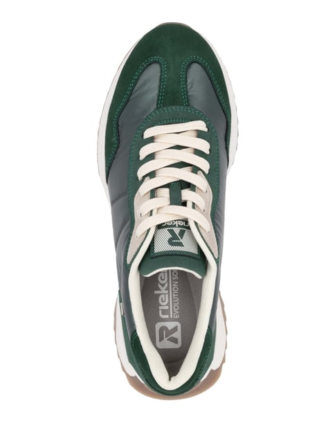 Grüne Rieker Sneaker Low für Damen aus wertigem Kunstleder. Gute Traktion auf verschiedenen Oberflächen durch strapazierfähige, abriebfeste TR-Laufsohle. Gepolsterte, dämpfende und herausnehmbare Einlegesohle. Leichter Microvelour-Drysport-Futtermix mit atmungsaktiver Eigenschaft. Mit der Komfortweite ist ein Perfect Fit garantiert.