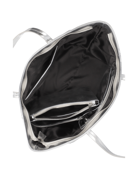 Der Silvia Schneider Shopper in glänzendem Silber ist ein echter Blickfang und vereint Stil mit Funktionalität. Silberne Fittings unterstreichen das edle Design, während zahlreiche Innen- und Außentaschen praktischen Stauraum bieten. Ein auffälliges Accessoire, das jedem Look eine moderne und luxuriöse Note verleiht.