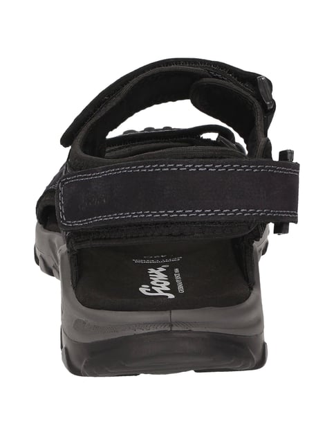 Sioux hat auch ansprechende Outdoor-Trekking-Sandalen für Herren: Das markante Oberleder besteht aus Kalbnubuk, als Futter haben wir gepolstertes Neopren-Material verarbeitet. Das weiche Microfasertextil-Fußbett ergänzt sich optimal mit der weichen, profilierten Luftpolster-Laufsohle. Durch die Klettverschlüsse über den Vorfuß und über den Rist lässt sich die Sandale perfekt an den Fuß anpassen.