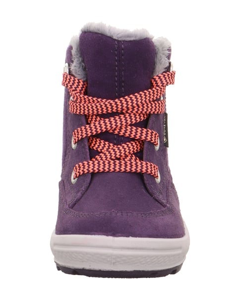 Supersüß kommen die Boots GROOVY 2.0 im Trekkinglook daher. Das Veloursleder und der Plüschkragen machen die superfit Stiefel perfekt für den Winter. Absolut stylisch: das coole Nappapatch mit Druck und Zickzacknähten in Akzentfarbe sowie die 2-farbigen Schnürsenkel. Auch durch die 2-farbige sportive Profilsohle mit der dynamischen Rautenstruktur liegt GROOVY 2.0 voll im Trend – sowohl optisch als auch funktional.
